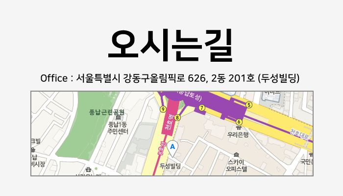 주소 : (05378) 서울 강동구 올림픽로 626 (성내동) 2동 201호 (두성빌딩)